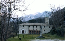 Giovanni d'Apia, primo signore di Campagna in età angioina, pare fosse sepolto in una chiesetta dedicata alla Madonna di Avigliano, la cui edificazione viene fatta risalire al 1240 quando, secondo una leggenda, vi fu ritrovato il simulacro di una Madonna proveniente da una chiesa della terra di Avigliano in Lucania. Tale tradizione non trova però conferma documentale: già nel 1164 si parla di «terre de tenimento avelliani de pertinentiis Campaniae prope ecclesiam sancte marie ... » ed in un contratto del 1177 si parla di una vigna in località Avigliano, località ancora richiamata in una donazione del 1229. Fu evidentemente creata per conferire maggiore prestigio alla chiesetta, posta a circa cinquecento metri di altezza fra i monti, a cinque chilometri dai casali di Campagna, ma in una buona posizione per permettere l'afflusso di pellegrini dalle zone interne circostanti, prima fra tutte la stessa Acerno.La figlia del conte Giovanni, Isabella del Balzo d'Apia, domandò al pontefice che le fosse concesso di costruire, sul luogo della primitiva fabbrica, una chiesa ed un convento da offrirsi ai padri francescani e quindi la sostituzione dell'esistente. Alla richiesta del permesso di costruzione del convento è legata inoltre anche quella dello spostamento territoriale e temporale della fiera, dal luogo in cui si teneva «in ipsa terra Campaneae ab antiquo tempore», nelle immediate vicinanze del nuovo cenobio, ed in periodo diverso da quello che nel tempo antecedente coincideva con la mietitura. Fu così concesso nel 1377 che il mercato avesse luogo dal 14 al 27 agosto di ogni anno presso la fondazione religiosa . L'edificio «tamen parum et inops sicut tunc moris erat fuit extructum» rimase ai minori Conventuali fino al 1440 quando, secondo la tradizione, pare abbia ospitato (fra il 1440 ed il 1443) S. Bernardino da Siena. La venuta del santo fu all'origine del passaggio del convento dai frati Conventuali agli Osservanti e fornì l'occasione per la decisione di ampliare le antiche e modeste fabbriche. I lavori iniziarono molti anni dopo: alcune opere riportano la data 1574, e gli affreschi, il 1575. I secoli successivi videro altri cambiamenti del complesso, composto dalla chiesa e dal convento, che alternava momenti di benessere a momenti di difficoltà che comportarono l'abbandono del cenobio nell'ultimo ventennio dell'Ottocento. Solo nel 1923, il vescovo, ottenuta la disponibilità dell'intero edificio, lo destinò a sede estiva del seminario diocesano avviandone anche i restauri, ultimati nel 1929. Sul piazzale di accesso affaccia il corpo longitudinale della chiesa dietro la quale si estendono le strutture conventuali organizzate intorno ad un chiostro quadrato. La chiesa ed il convento hanno l'ingresso sul fianco occidentale; la natura del suolo ed un accentuato dislivello comportano un piano di posa più basso per la fabbrica conventuale e la formazione di alti e forti arconi di sostegno che caratterizzano tutto il prospetto degli ambienti monastici; numerose aperture disordinate sono ricavate nelle pareti di fondo delle arcate che creano una forte zona d'ombra in facciata. Il portale principale dell'aula religiosa e il portalino del chiostro si aprono su un limitato spiazzo chiuso da un parapetto in muratura. Il portale della chiesa è un semplice arco in pietra, appena segnato da sottili modanature, mentre maggior interesse è accordato all'ingresso a mezzogiorno, laterale rispetto allo sviluppo della fabbrica, ma utilizzato come accesso principale. L'interno reca tracce evidenti della storia plurisecolare dell'edificio e delle numerose trasformazioni cui fu soggetto. Le colonne e le volte sono le parti superstiti (insieme all'acquasantiera formata da una colonna medievale dal fusto ad intagli geometrici con capitello a volute e vasca poligonale) del primitivo, trecentesco edificio, sulla cui posizione o dimensione è impossibile avanzare alcuna ipotesi. Il piccolo chiostro quadrato, quattro arcate a tutto sesto per ogni lato impostate su colonne dal fusto esile e con capitelli di diversa fattura e d'impronta quattrocentesca, costituisce un pregevole ambiente sufficientemente intatto. Il porticato è sormontato da un solo piano e nella parete liscia si aprono semplici vani scorniciati. La decorazione terminale è costituita da quattro file di coppi inserite nella muratura al di sotto della linea d'imposta della copertura a tetto; la rustica pavimentazione in grosse pietre e la vera da pozzo ottagonale contribuiscono alla suggestione dell'appartato e silenzioso ambiente in cui note di colore sono fornite dagli affreschi che decorano le lunette del porticato coperto da volte a crociera terminanti, sulla parete di fondo, in peducci pensili di gusto rinascimentale.